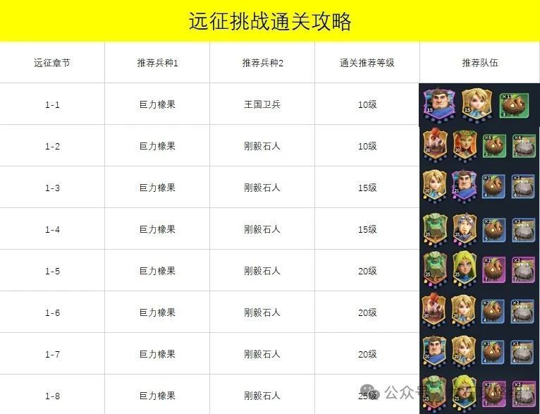 02远征各关卡推荐阵容第一章前排肉盾英雄后排输出英雄,加上前排刚毅石人,后排巨力橡果。十几级的平均等级即可通关。(有石诺和托尔可以优先使用)