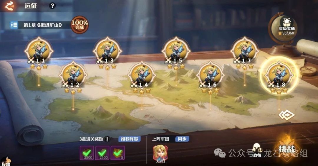 2、每一关通关后的敌人的英雄等级和兵种阶级都会有所提升,可以通过远征左下角的敌情来查看关卡中的敌方英雄与兵种,通过地方的战力可以判断自己的战力能否战胜。