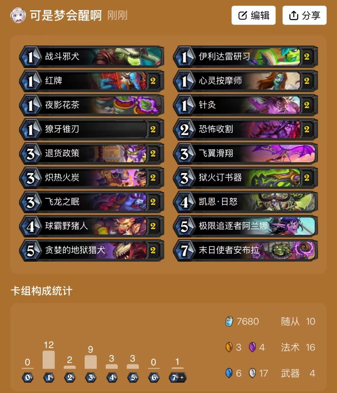 獠牙锥刃、低费随从,如果内战或者碰到快攻也可以留一张解场。