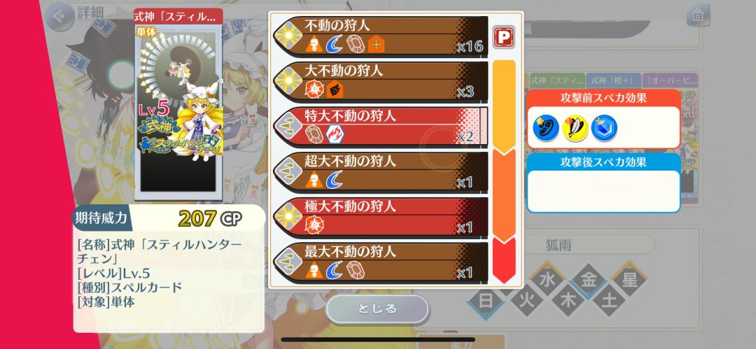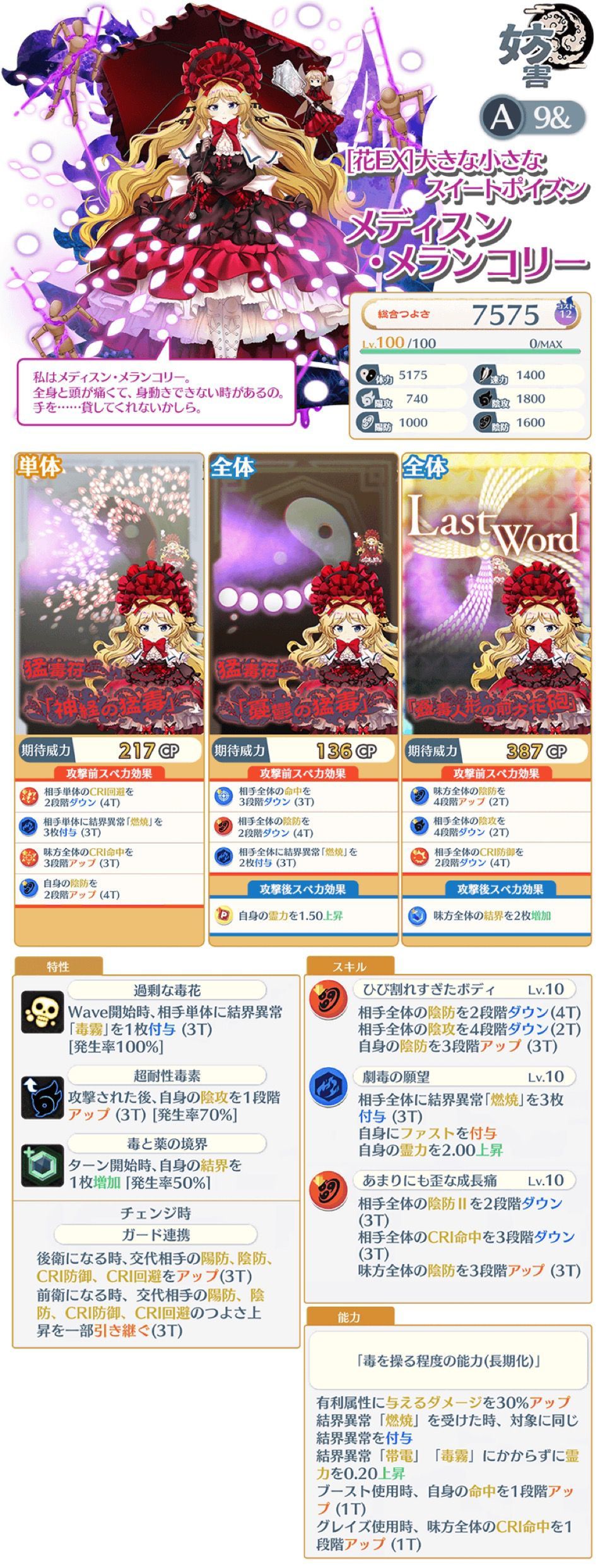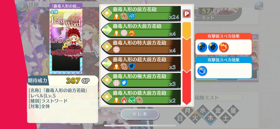特攻:人类、音乐家、死神、花、阎魔、异变解决者、兔(全段落相同)