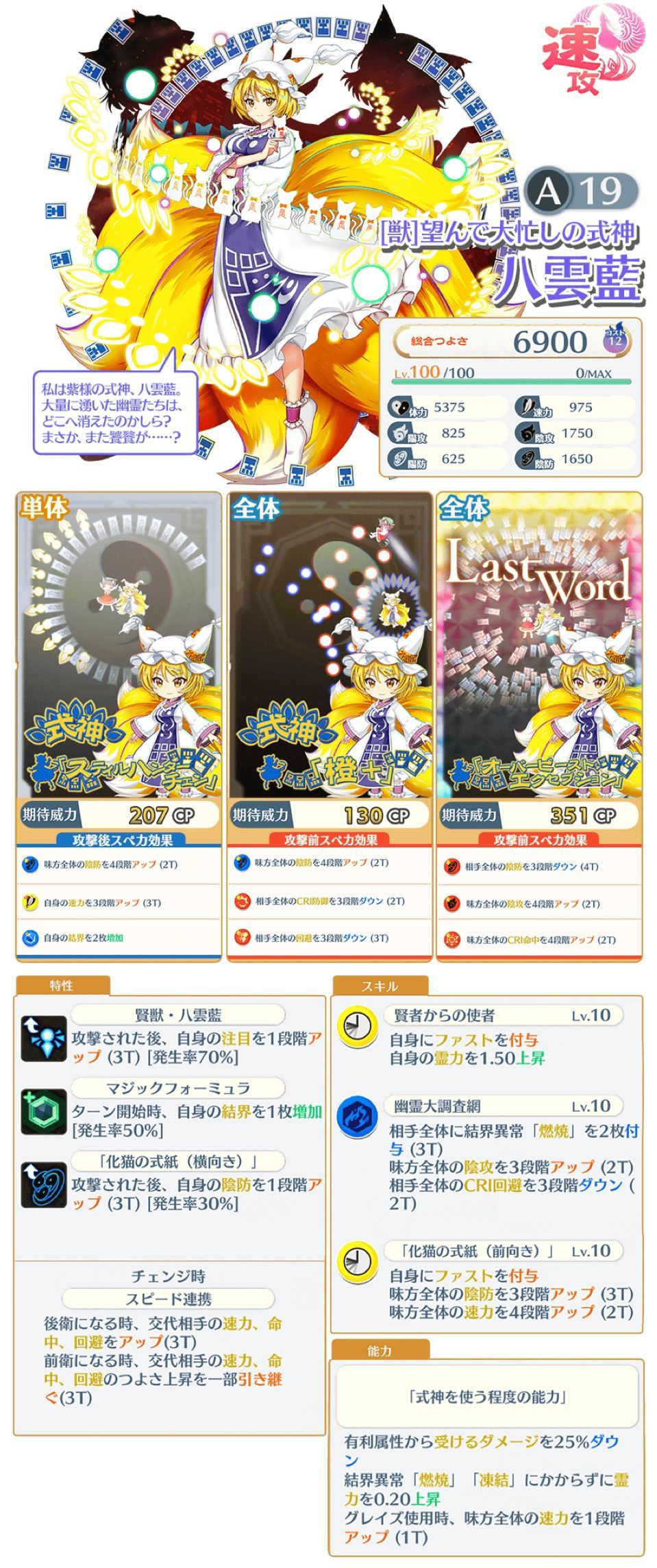 特攻:主特攻妖怪式神,副特攻人类妖精式神,