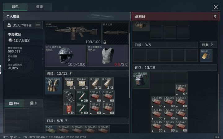 我只带了个蓝胸挂蓝背包,手术包止血带,玩蜂医去普坝白嫖的。带包是觉得人机的包不够用,不仅装得少,有次开到个3×3大金只能干瞪眼,然后叫队友拿了。带手术包止血带是怕骨折流血。
