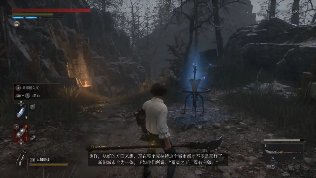 由于我已1年没玩,所以选择重新打一周目复健,目前进度在第五章(4.5h),进度不慢且状态已找回。
