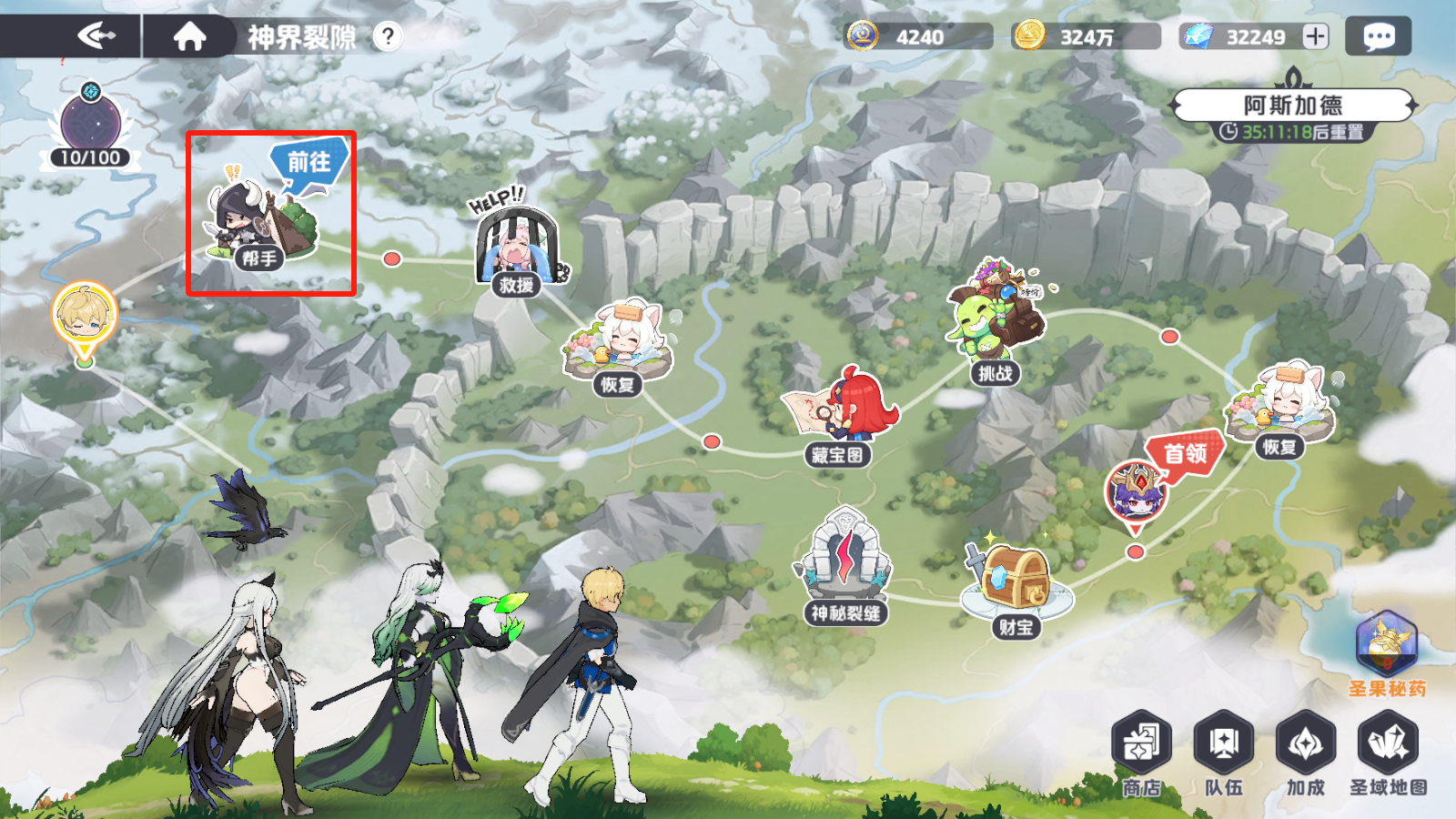 部分玩家可能已经拥有比较完善的阵容,也习惯了使用自己的阵容,因此对帮手事件不太重视,实际上,前期玩家已经拥有完备阵容的情况较少,而且即时已经拥有了全面且习惯使用的阵容,也应该尽量养成,多看一眼帮手事件的习惯,因为帮手事件有一定概率能刷出神话品质的幻灵,且在玩法关底的最后一个帮手事件,必定能招募到一个“神话”幻灵。相信各位都能理解神话品质的幻灵有多强大,即使是星级和等级与自己阵容相近,“神话”幻灵依然在强度上有极大优势,能明显有提升玩家在神界裂隙玩法的整体体验。