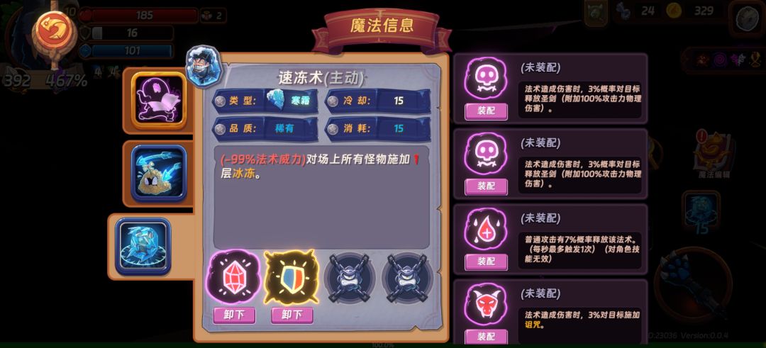 到中期智慧属性成长起来了,转型版本答案冰法,冰溜溅射(符文带造成伤害增加法强,或者命中回蓝和法术吸血)+速冻术(符文带普攻50概率触发和技能印记×4)+倔强土灵保命(氪金玩家缺伤害选暗影模仿增伤)轮椅成型,按住攻击键清图就完了,角色技能替换掉,自带宝物替换掉,在神秘小屋用恶魔之心换金币加属性和所有属性等同于智慧