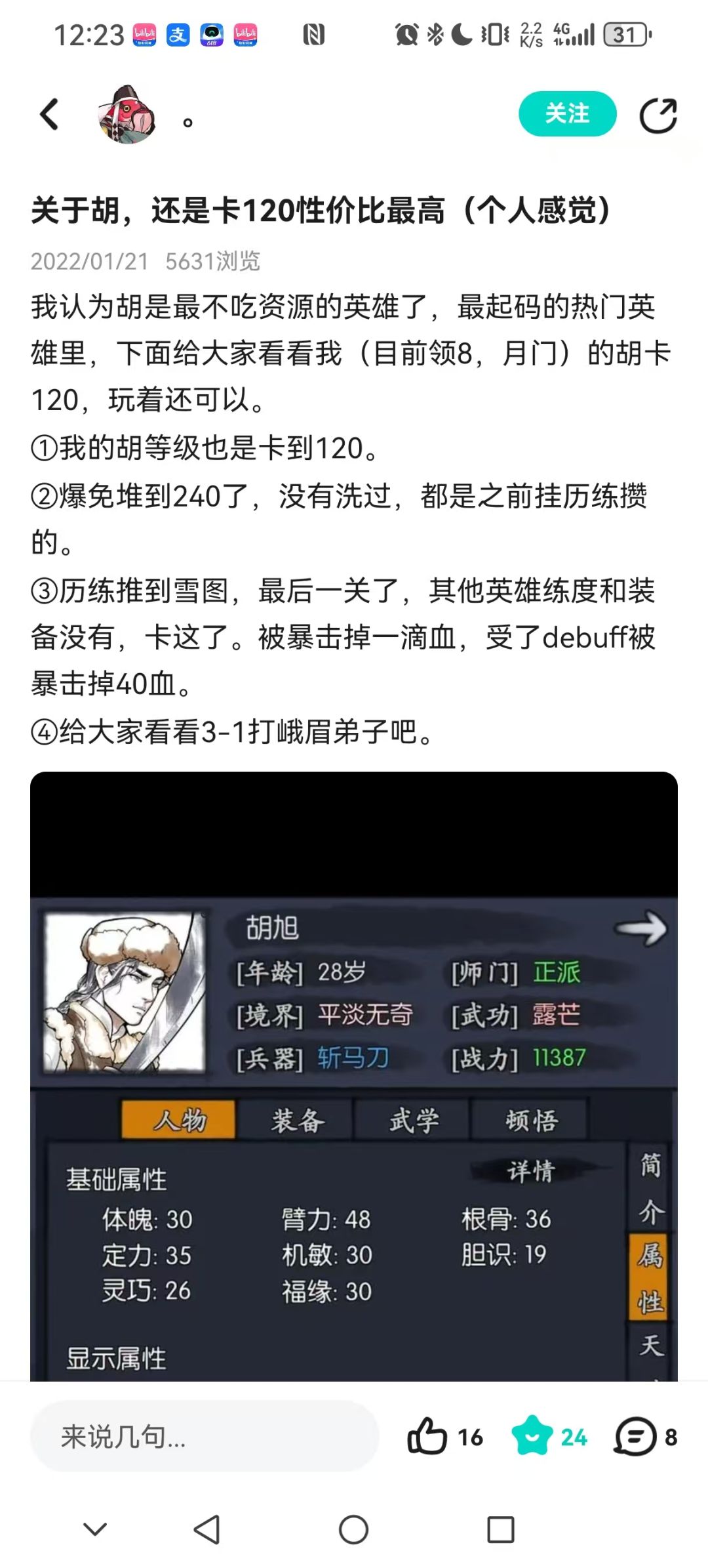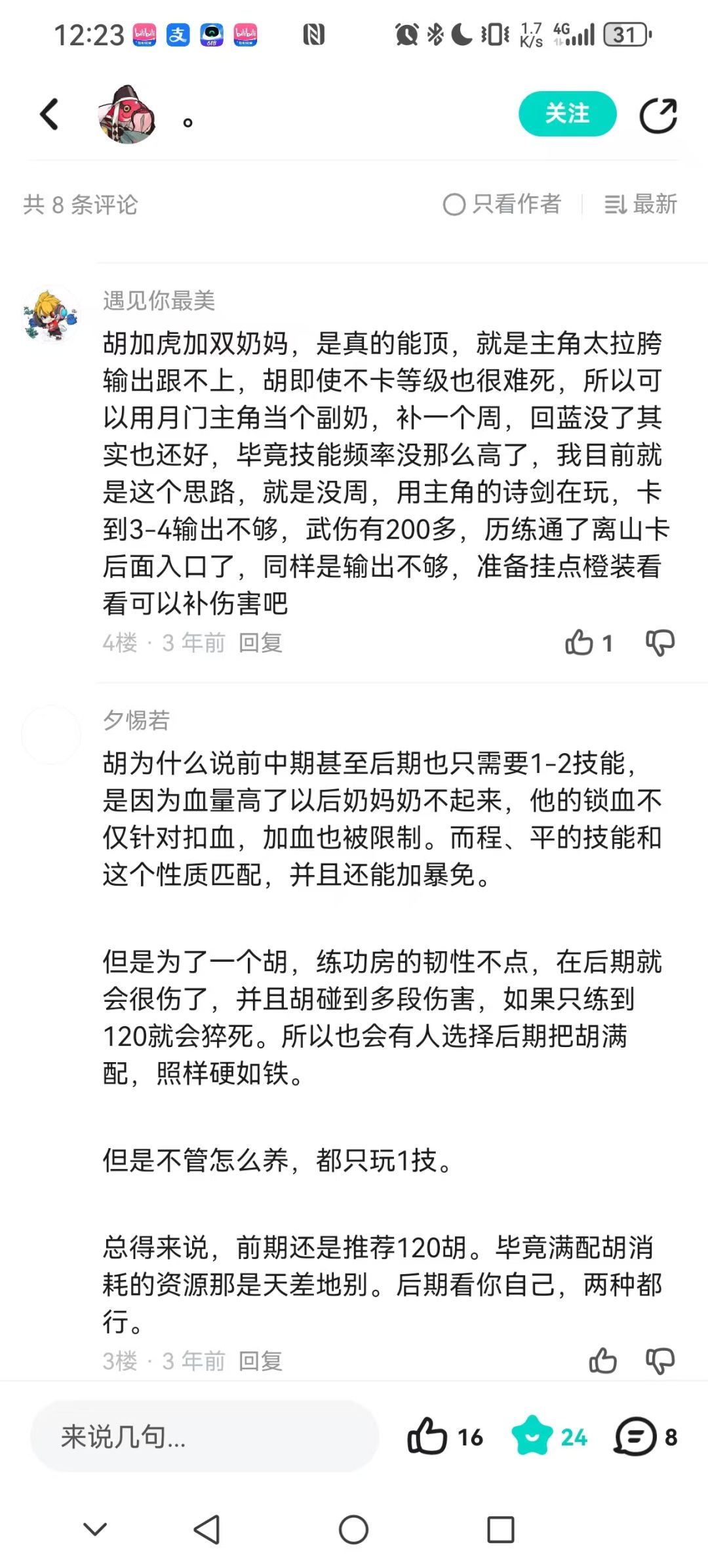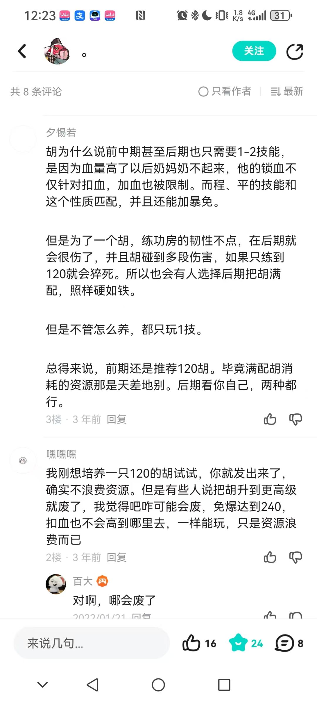 但是看其他的攻略又是在说推荐胡旭卡120,因为再往上升1.韧性高了,吃到暴击的概率就低了。 2.奶妈奶不起来