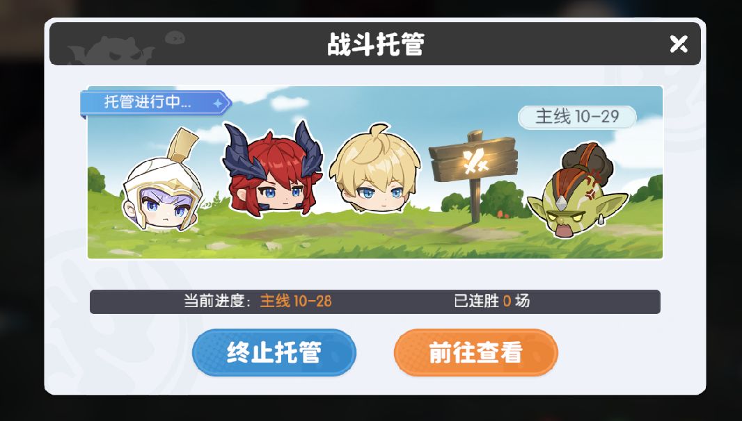 功能亮点:点击左下角托管键,返回主界面并行操作其他内容(如龙骨遗城、奇境攻防);托管期间自动推进关卡,可随时监控进度;