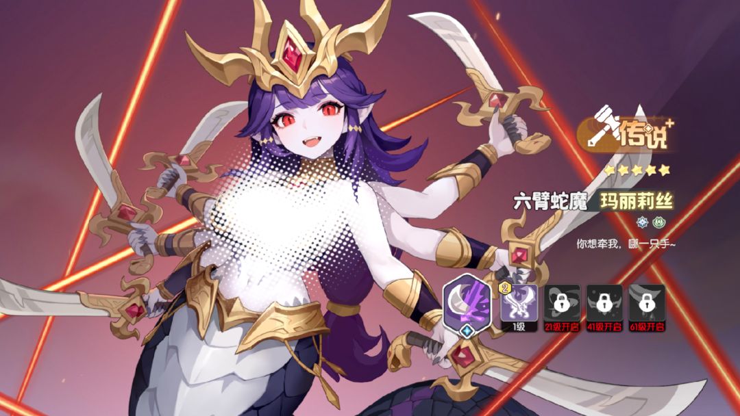 CBT时,我起初是先抽的六臂蛇魔,因为比较符合个人XP,但后来决定走元素回响队伍,所以没有继续培养六臂蛇魔。不过六臂蛇魔是一名优秀的前排战士,不仅能扛伤害,还能在生命值降低时进入狂野状态,进一步提升输出能力。此外,她的奥义虽然需要消耗自身血量,但可以通过技能回回血,设计上非常巧妙。不过需要注意的是,六臂蛇魔的血量管理是个重要问题,尽量让守卫吸引敌方火力,避免过多伤害落在她身上。