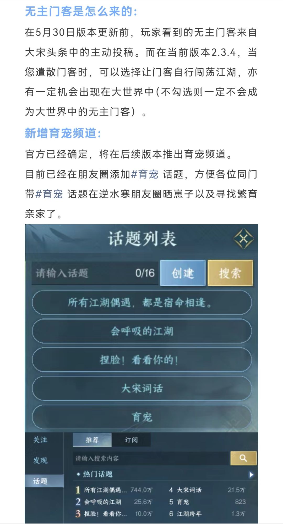 逆水寒联动时装不限时,下周18块新时装,免费新祥瑞,NPC群聊创建教程,新增育宠频道,无主门客是怎么来的