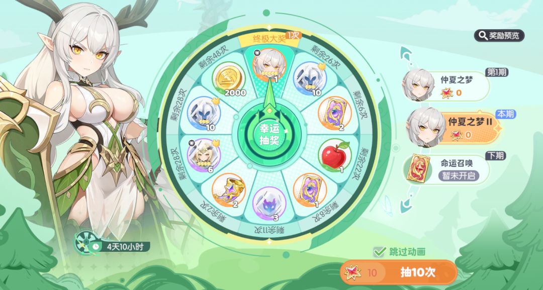 幸运印记:每个幸运印记可以用于抽取幸运转盘,奖励内容包括:召唤券、好感度道具、幻灵碎片、黄金号角……等等。