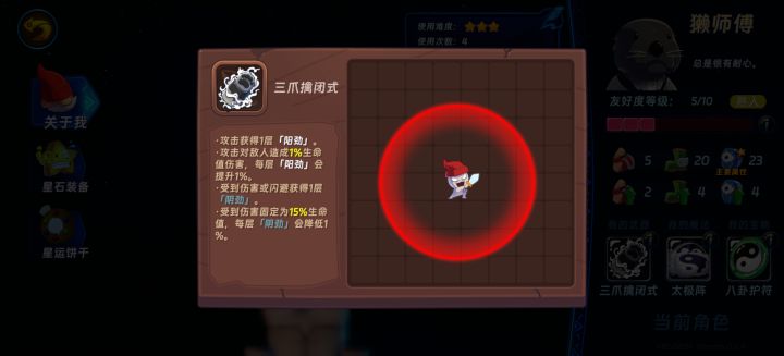角色技能消耗所有阳劲层数对身边敌人造成伤害,并且根据阴劲层数恢复血量,普攻就可以1秒叠满阳劲,阴劲要受伤才叠,所以回血要看左上角阴劲是否叠满,如果没叠到阴劲则不会回血