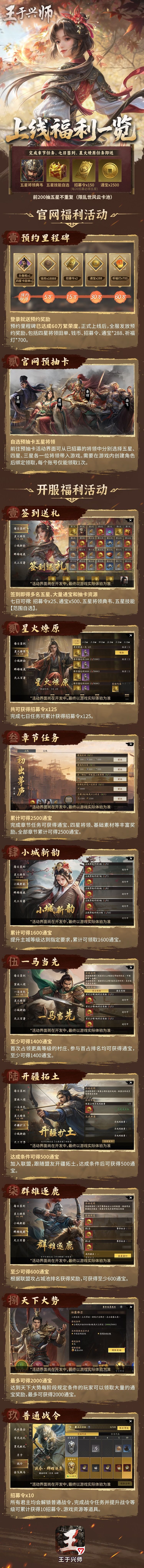 游戏内准备了以下的开服福利活动,助力各位君主征战疆场!