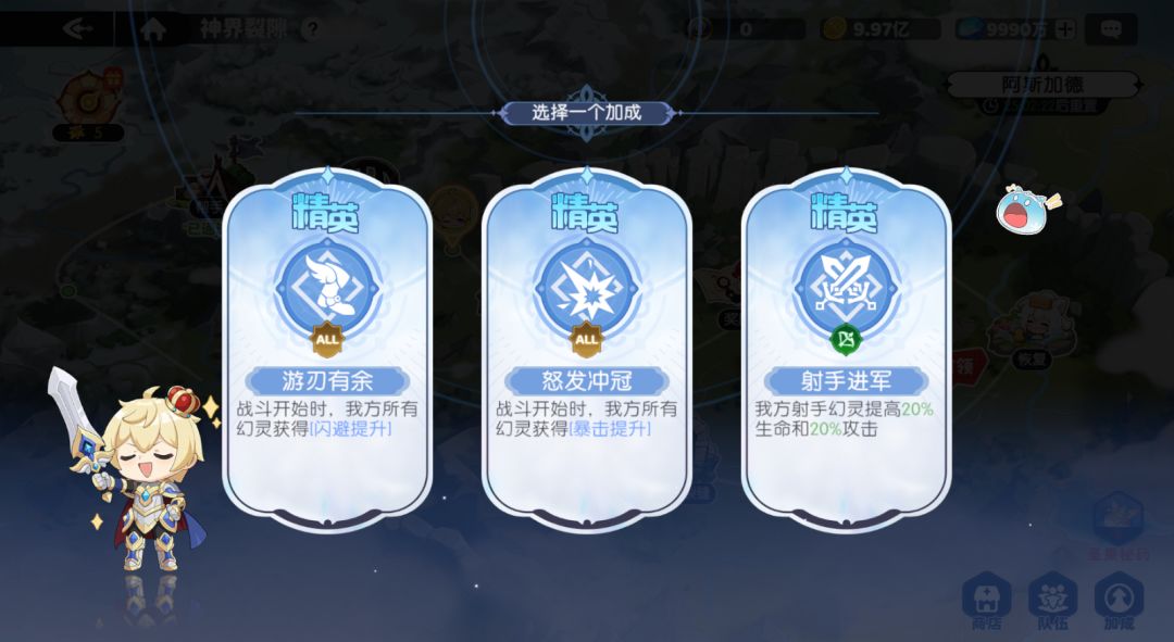 战斗胜利后可以选择加成加成有分为精英、史诗、传说三个等级,传说的效果通常比较好,但还是请优先依照自己的阵容选择需要的buff。