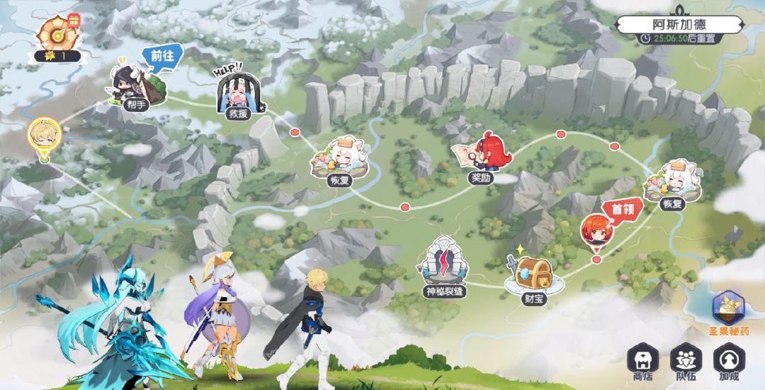 另外如果遇到温泉,也可以复活角色或恢复角色血量,所以玩法整体来说并不会太困难。推完所有关卡后需要等待一段时间才能进到下一个裂缝,最后要注意的是,神界裂隙每2日进度会自动重置,因此务必要记得打完才不会没拿到奖励!。