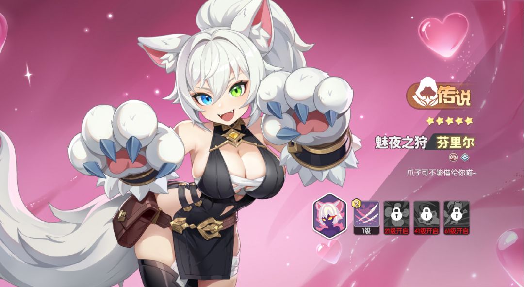 例如首充可以拿到的传说喵喵芬里尔,技能带有回复与收割。