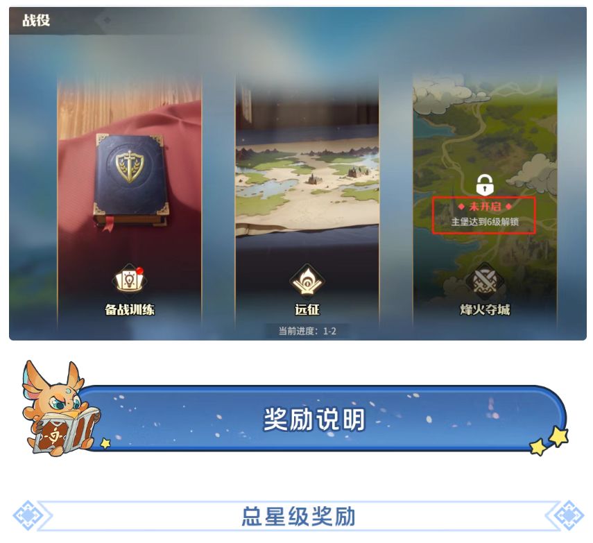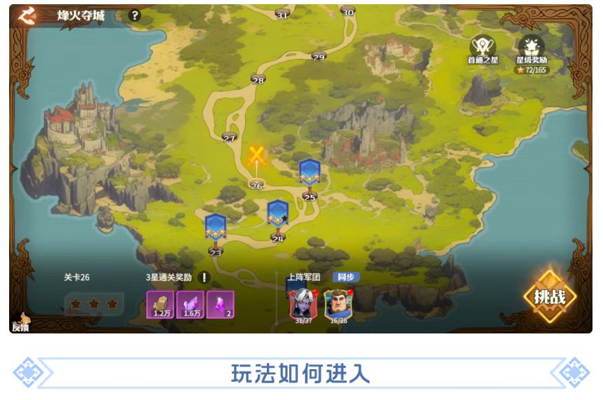 第一天跟随主线任务完成进度,可以在主线第五章,主堡6级的时候解锁烽火夺城玩法。