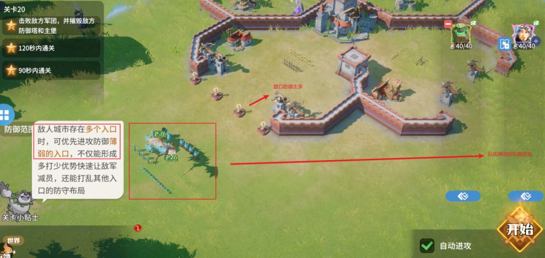 有些关卡有多个入口,需要调整队伍在不同的入口攻击,需要提前调整队伍站位。如下图:
