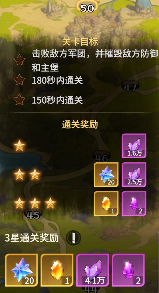 下图为50关卡目标,提供了大量的科技材料和少量洗练合成材料。