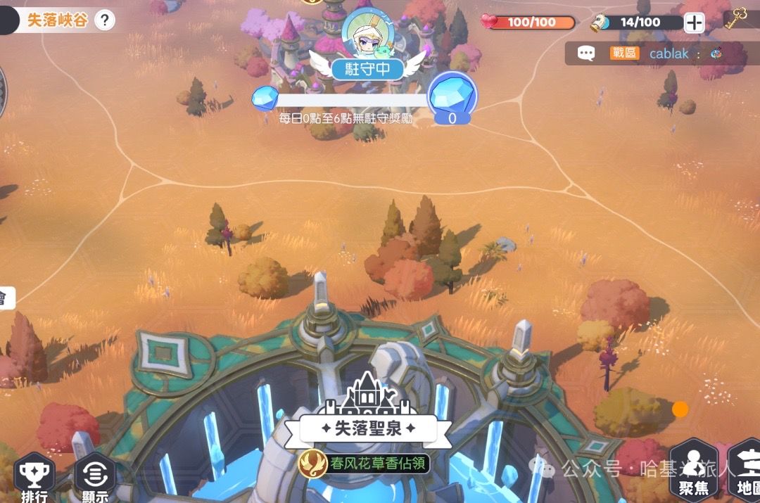 驻守能获得钻石奖励,周五会开启中间领地“失落圣泉”(如下图所示),同区的工会会进行争夺,周六周日在“失落圣泉”中驻守获得钻石翻倍。