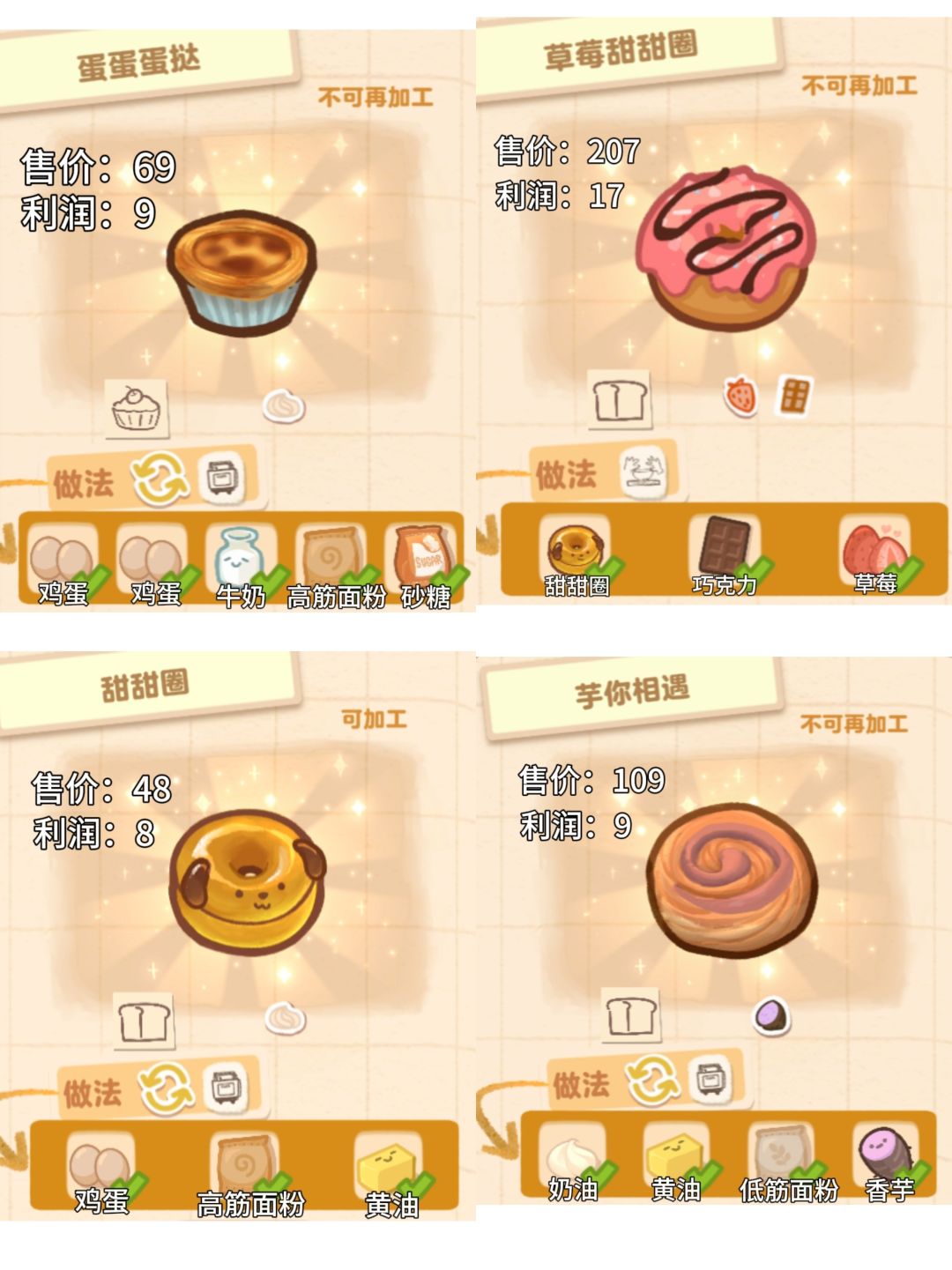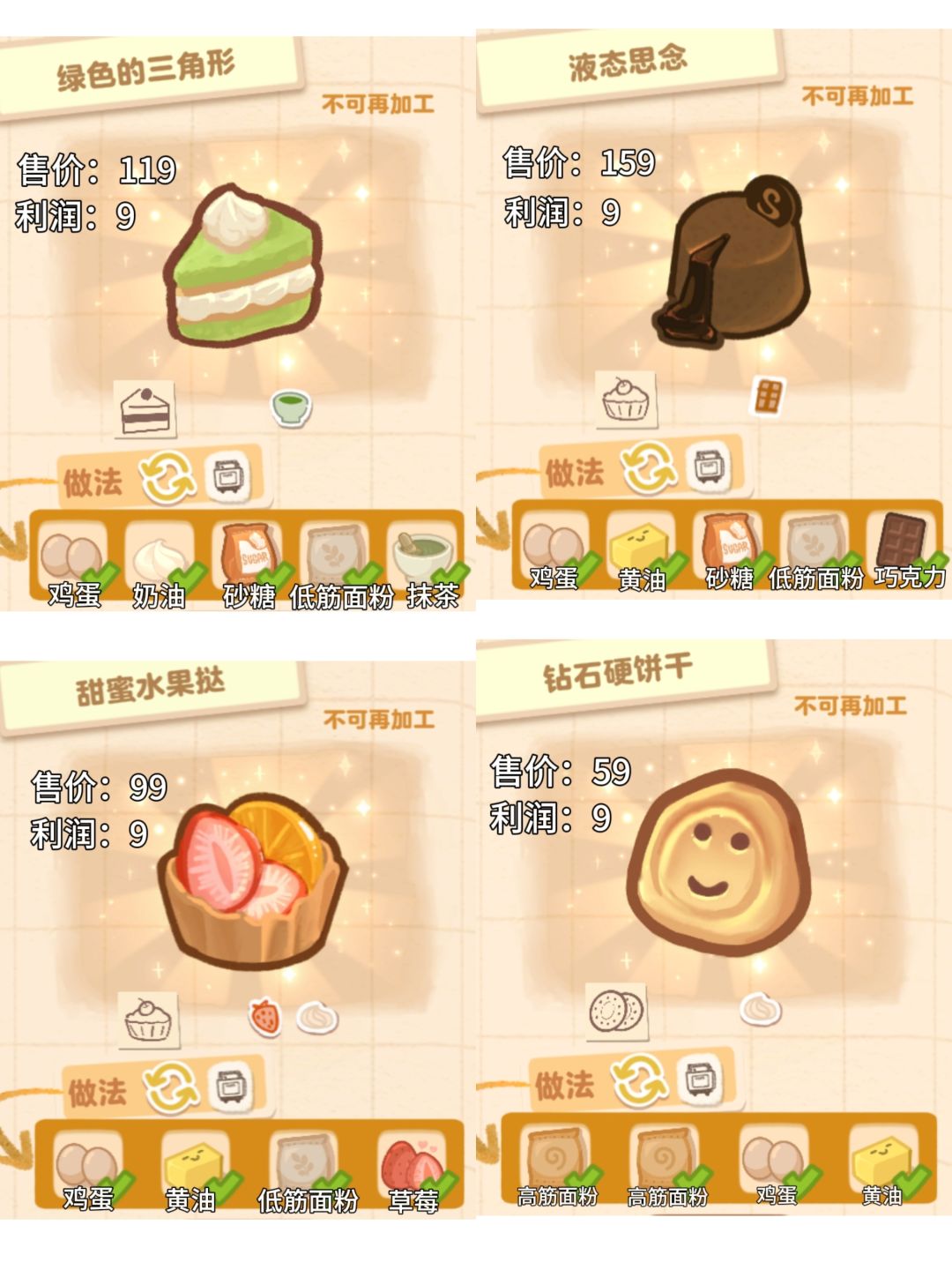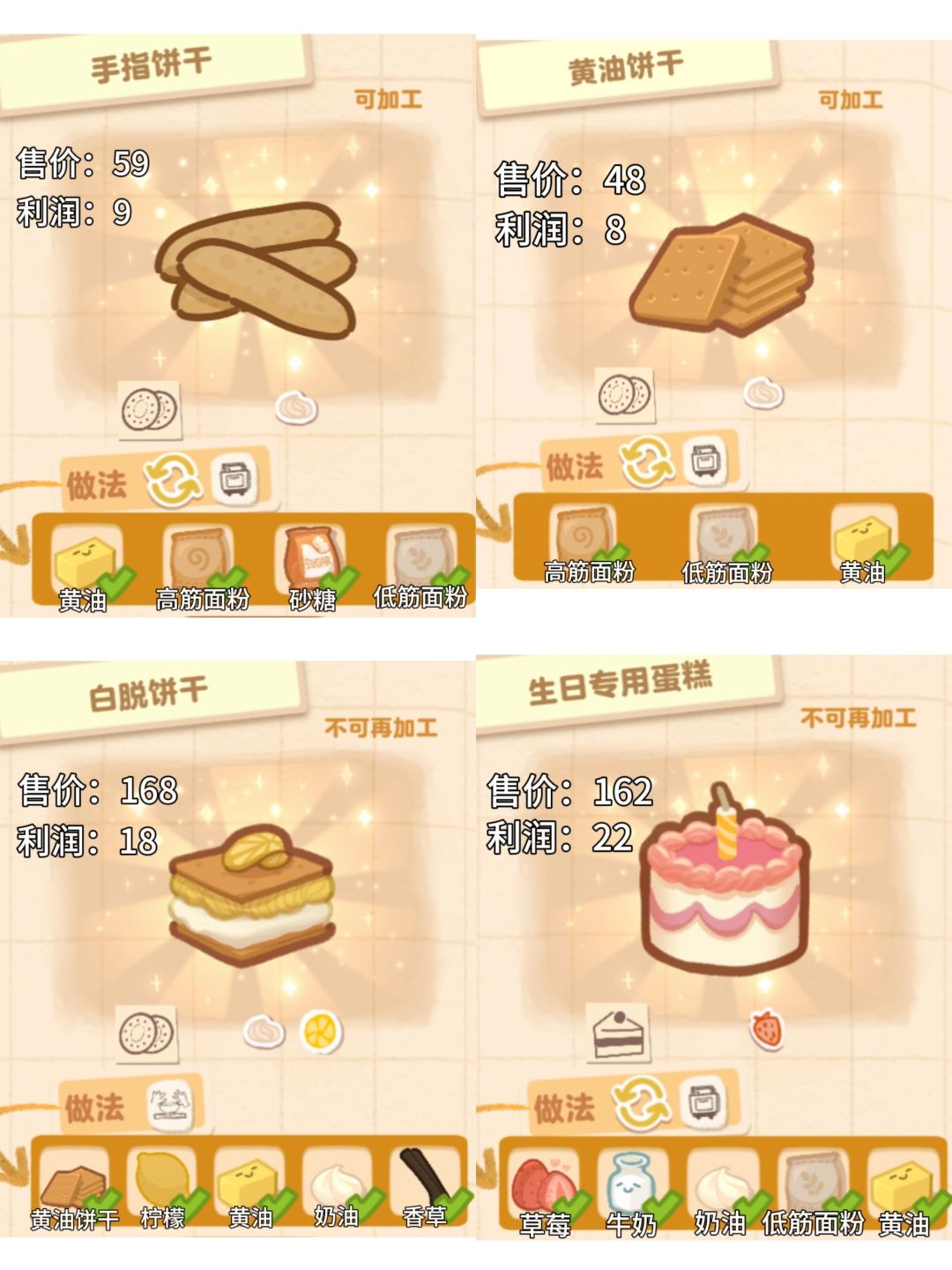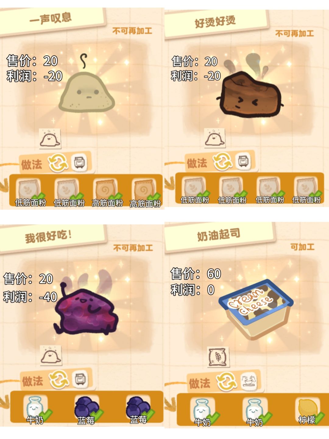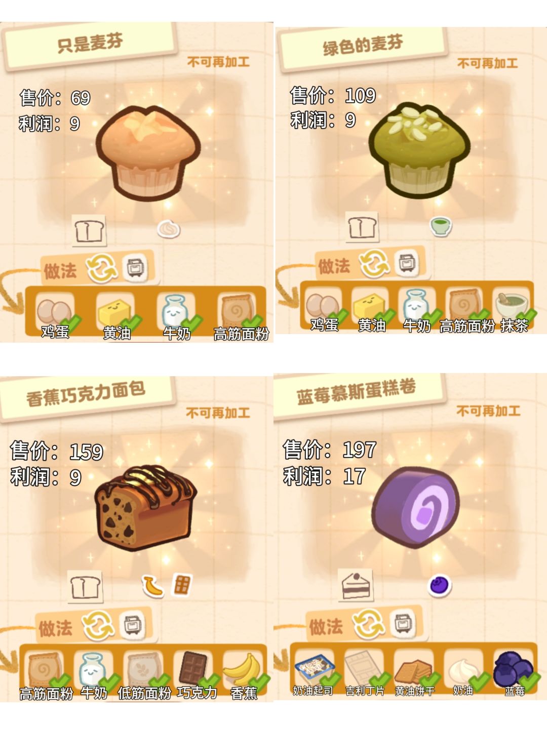 盒子面包坊demo版本的32种食物配方