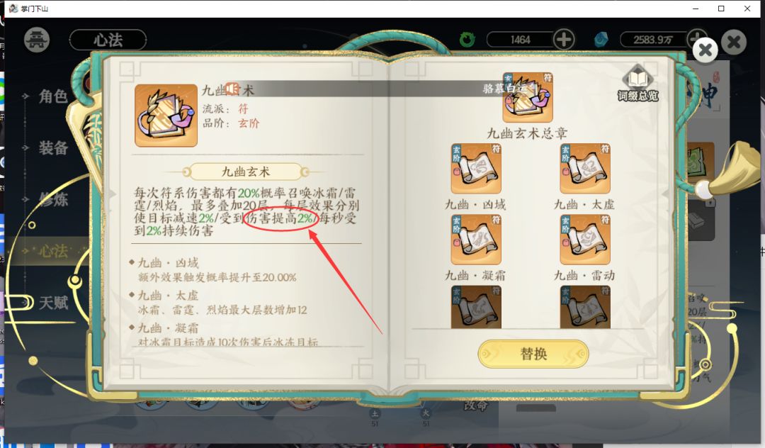 雷霆buff3:符心法总章:自身带2%雷霆伤害(心法二目前bug,无法+8层)一般剑符的输出如果金绝词条另外+20层,是词条20+金绝自身20=40*(金绝自身1.5%+心法2%)=40*3.5%=140%增伤