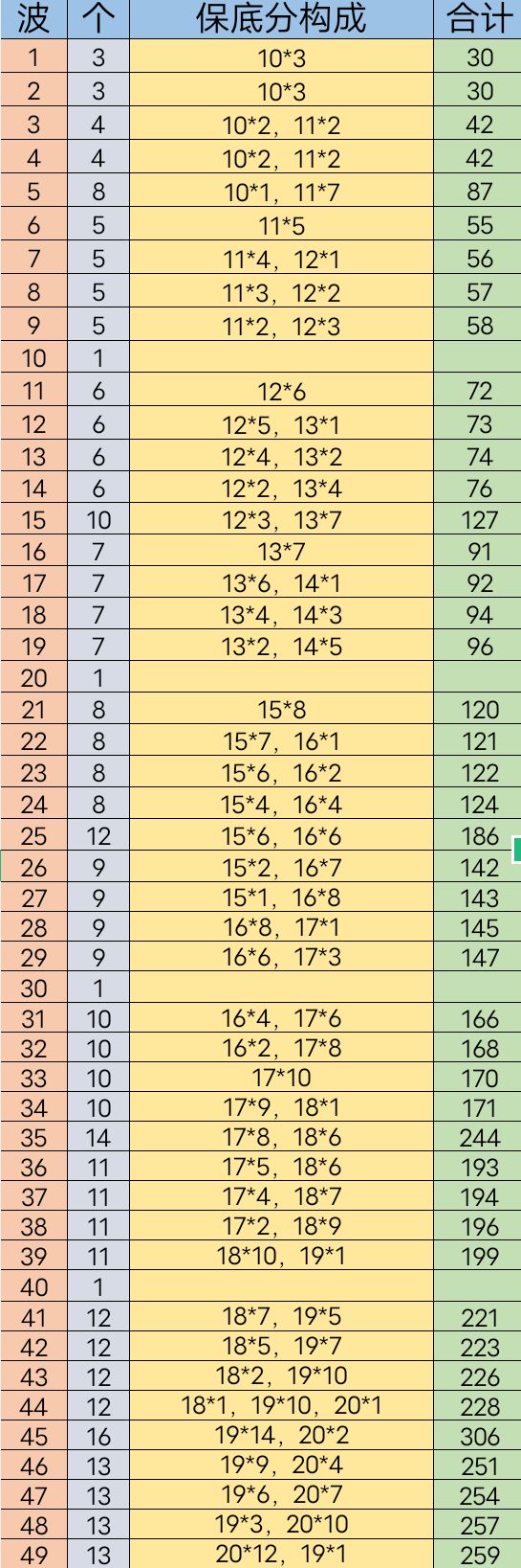 1-49波怪物保底分构成(不含BOSS)
