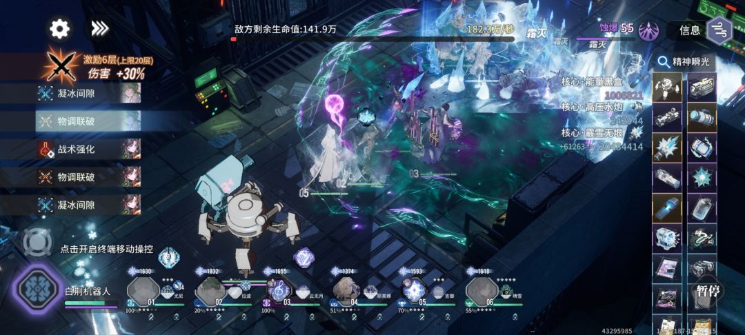 在最终boss关卡,霰雪无垠的输出只能达到boss血量的1/4(按两条血计算)。对boss的主要输出是靠手操+技能组合达到。