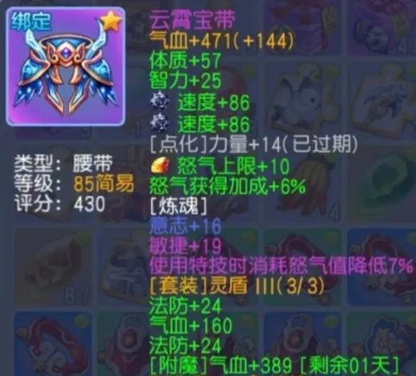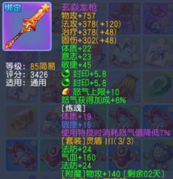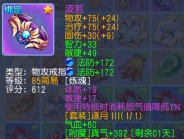 炼魂属性体质19、敏捷18,表现尚可,有提升空间。特效为法术结果降低,虽能强化生存能力,但对辅助职业来说不够理想。