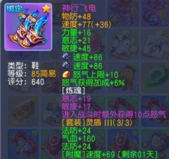 炼魂属性体质22、敏捷20,表现优秀。特效为进场加怒13点,整体表现出色。
