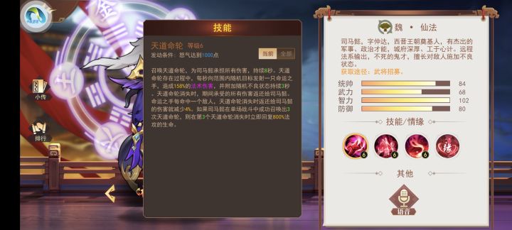 掌中三国中的司马懿绝对是版本之子,其独特的技能及免伤使其占据了主辅及副C的位置,很难有其他武将可与之比较。据笔者统计,90%以上的玩家会选择培养一个司马懿做为主辅,有40%的玩家会选择其做为副C。笔者对其技能特点分析如下:
