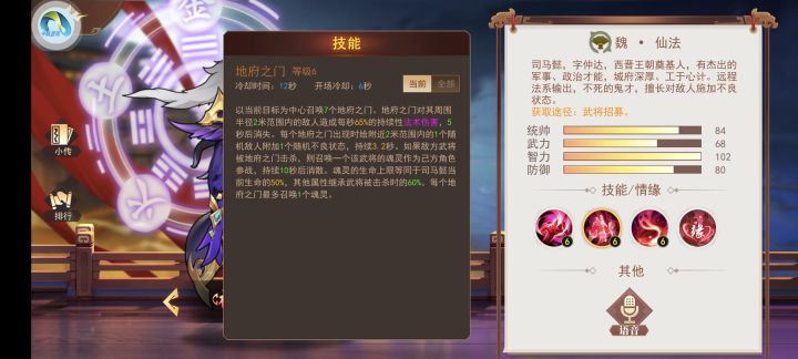 四、阵法配置。由于司马懿主要靠技能二来实现其辅助作用,笔者建议放景门降低技能二的冷却时间。