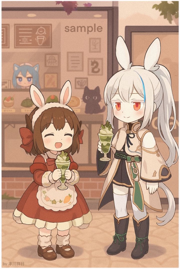 两只兔兔 吃 抹茶芭菲(杂鱼摸鱼二创)