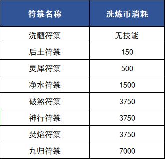 符文洗炼币可用于洗炼符箓的技能,根据品质的不同,洗炼的花费也不同。具体如下表: