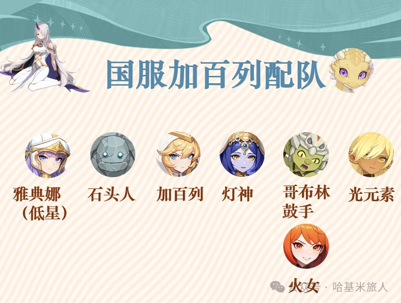 小氪:圣堂队中雅典娜才是最核心的单位,火女、光元素和石头人数量可观的小氪玩家(第一个月2000+预算)也可以考虑在加百列练度还没起来的情况下,二队选择圣堂,用火女作C来过度,雅典娜紫1即可投入使用。卡池抽取配合每日碎片,慢慢通过每周118元碎片拼加百列达成完全体。属于可抽可不抽。