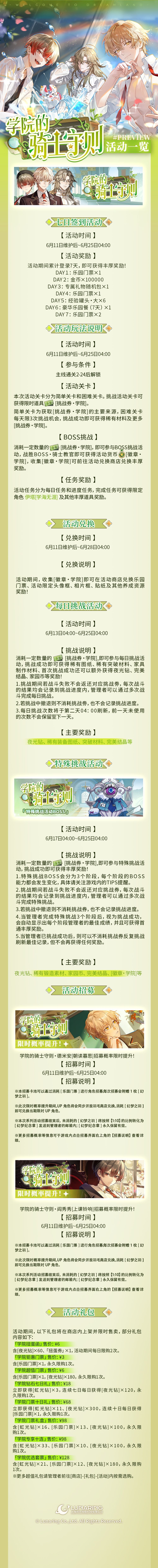 「学院的骑士守则」活动将于6月11日维护后开启,点击下方长图,即可查看活动详情一览↓↓↓