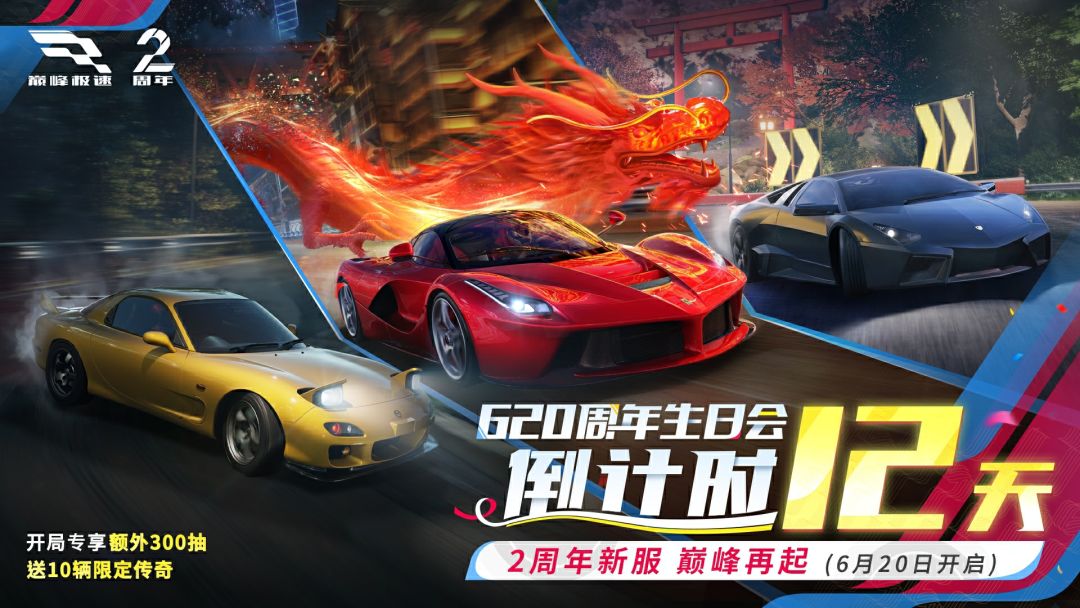 巅峰极速2周年倒计时仅剩最后12天。即刻扫描上方二维码预约新服【巅峰再起】,共庆生日狂欢!