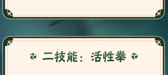 短按释放活性拳长按二技能神农做出招架姿势,期间可移动蓄力释放,若招架时受到攻击会触发防反,神农瞬身至敌人身后膝顶,并在空中挥出一记活性拳;神农普攻处于空中时可接活性拳,而普攻5A瞬至空中时有较大后摇,5A抓取命中后释放二技能可取消后摇,并直接打出活性拳。