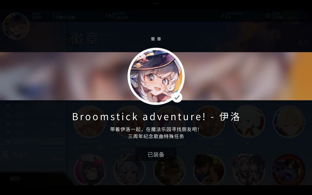 伊洛徽章和签到领取的周年徽章很像,不要佩戴错了,“Broomstick advanture! - 伊洛”才是我们需要的!!