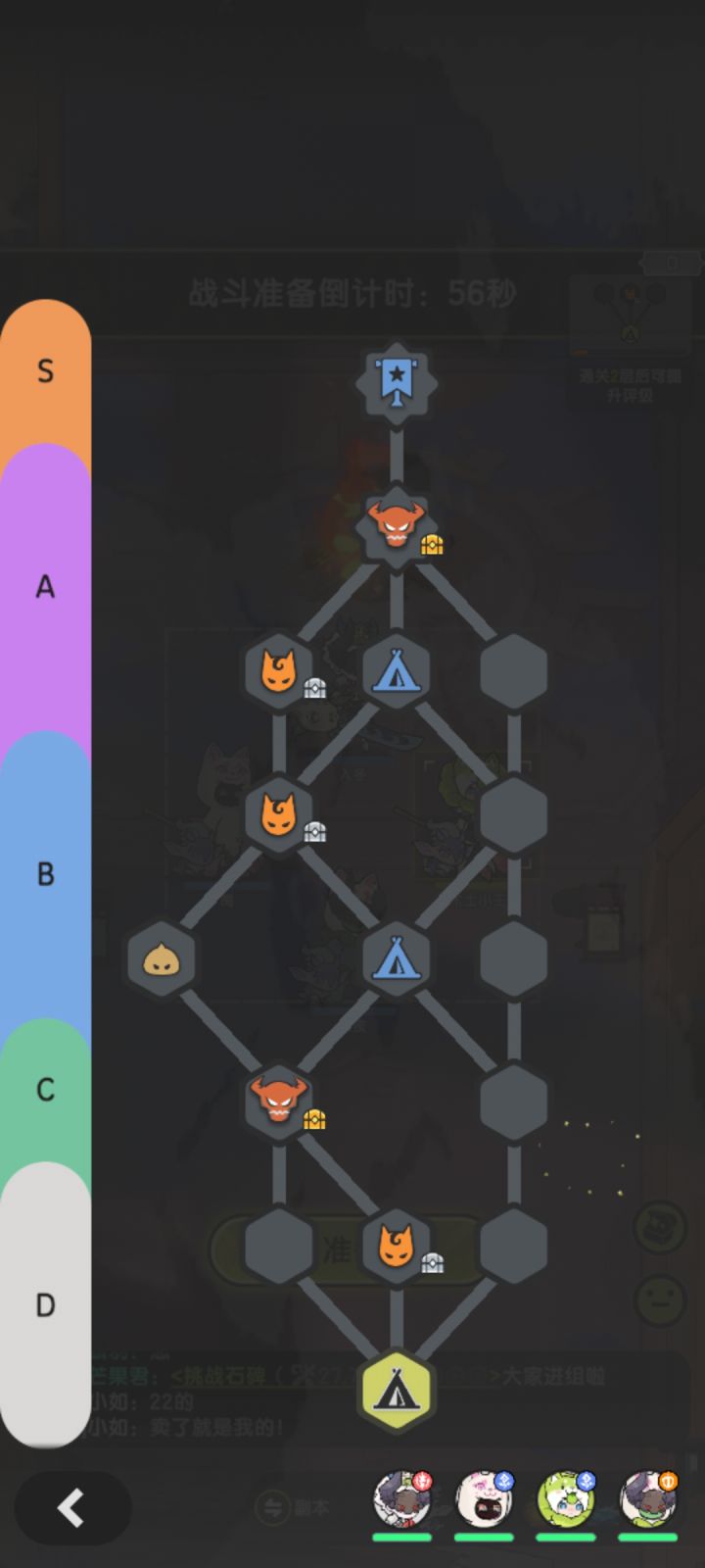 1中间(箱子),2左边(箱子),3休息,4左边(箱子),5如果队伍战力够的话走左边箱子,放弃boss;如果队伍战力不够走休息,也放弃boss拿A评就好了。