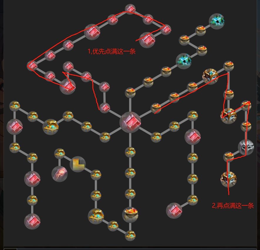 成长之路也提供了很多星图点, 这里最优先选择"魔方星图", 把出现魔方玩法的几率点满,如下图