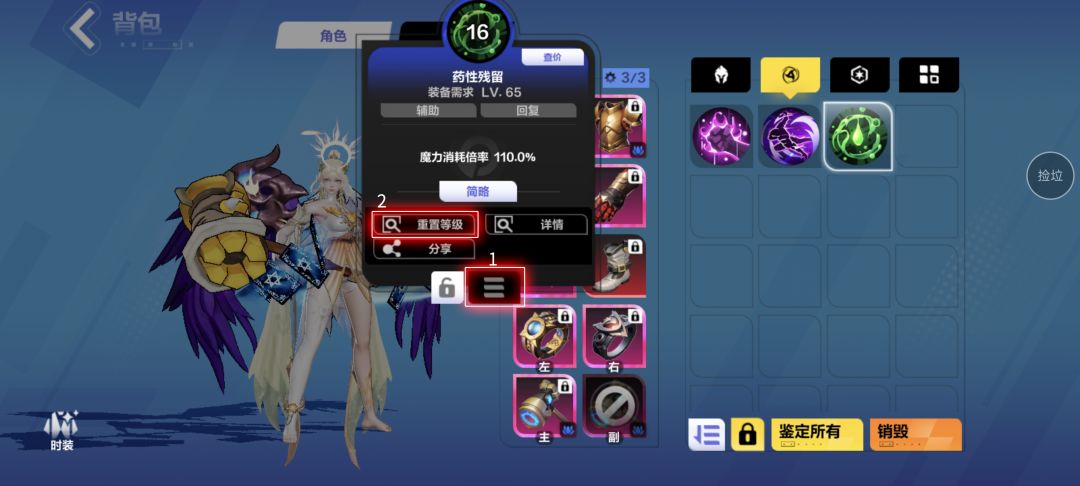 * 重置技能等级方法: 先获取技能, 然后打开背包, 选择这个技能,然后按下图点重置