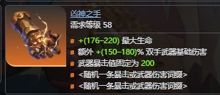 对于魔灵2来说, 一件好的双手武器搭配暗金力量手套"凶神之手", 可以让伤害增长几十倍! 手套如下图: