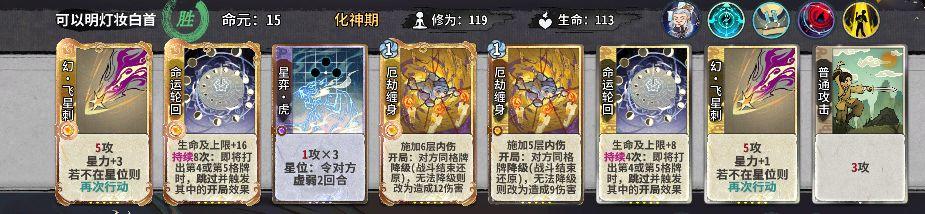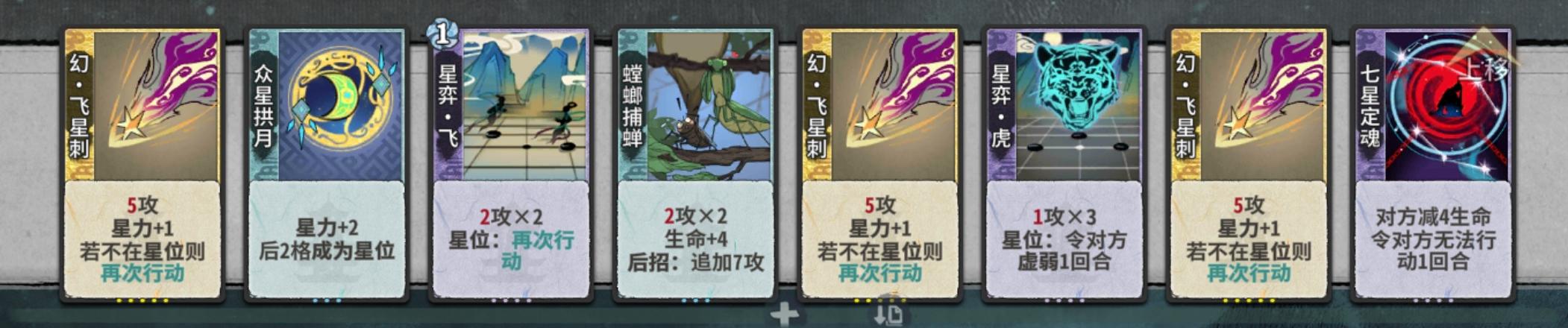 如果对方前几动几乎没有出伤,可以考虑飞星黄雀来快速叠加星力,当然上面这场对局我试过双轮子阵容也能打赢