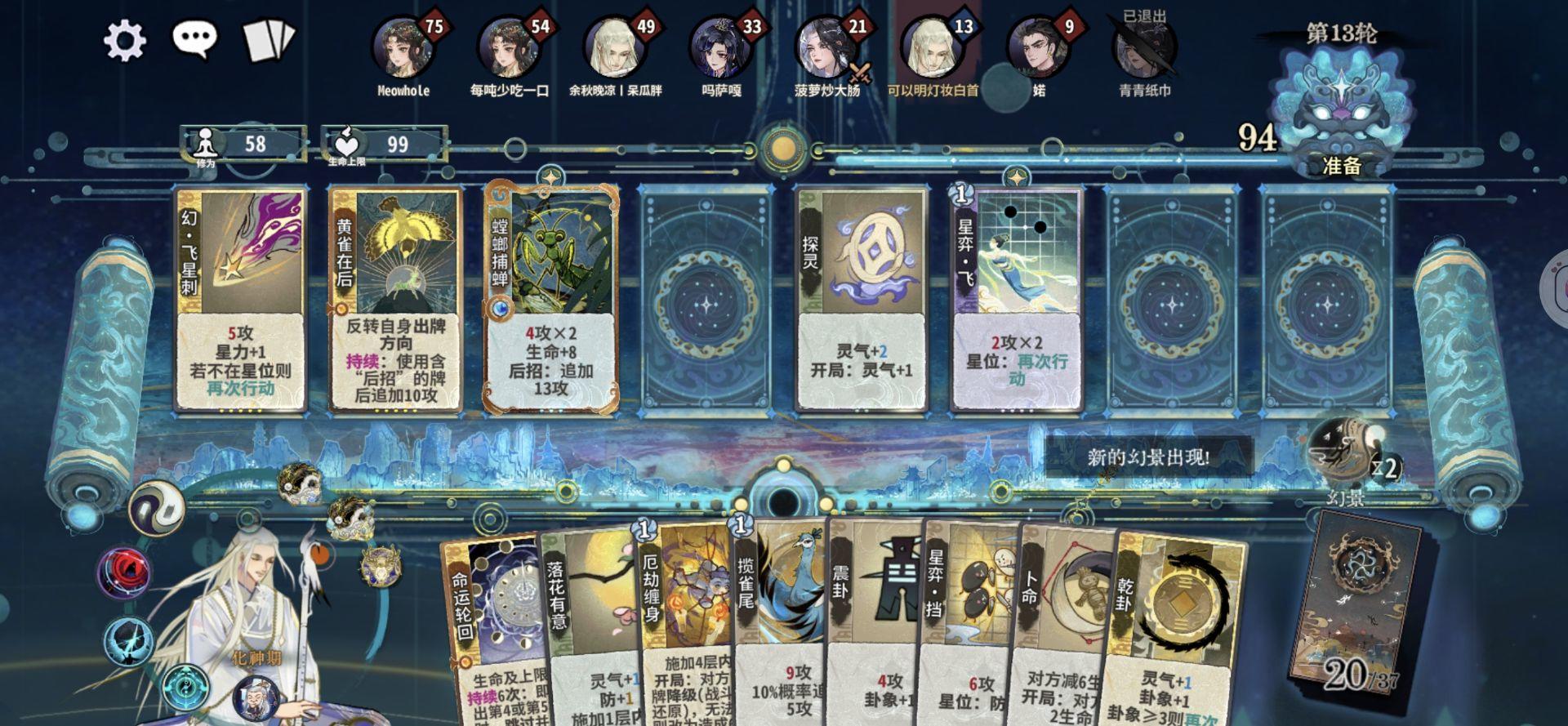 由于幻景事件有d生d的存在,化神我们拿变换之道可以最大化d牌次数,基本上d个一两轮就成型了。