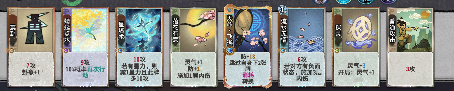 易数(高血量)>雷劫(11轮提前上本需要有牌d时)≥顿悟(虽然会损失3d但是化神+6修对于我们抢先手的提升还是很大的)>3修>斩道>变换之道>观星>稳固≥修养>布星问卦