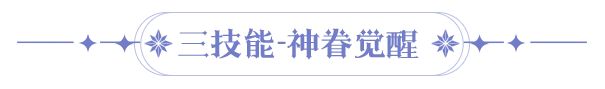 万般桎梏尽去,属以神眷觉醒,死神降临。行动前,若圣采儿已触发5次技能二的追击,触发神眷觉醒,提高一定比例攻击、防御和暴伤。
