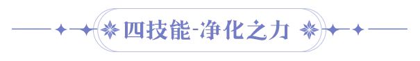 净化之域,盛世莲花。被附加【感官剥离】的目标,造成伤害的部分比例会为圣采儿回血。圣采儿首次受到致死伤害时,保留1点血量,吸收部分【感官剥离】目标的当前生命,且伤害提高3回合。