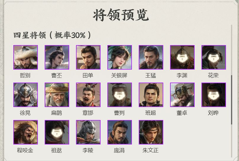 推荐主副将为:樊梨花/廉颇/勾践/秦琼/典韦搭配选择,军师紫将可继续选关银屏/李成梁,金将可选李秀宁/于谦。