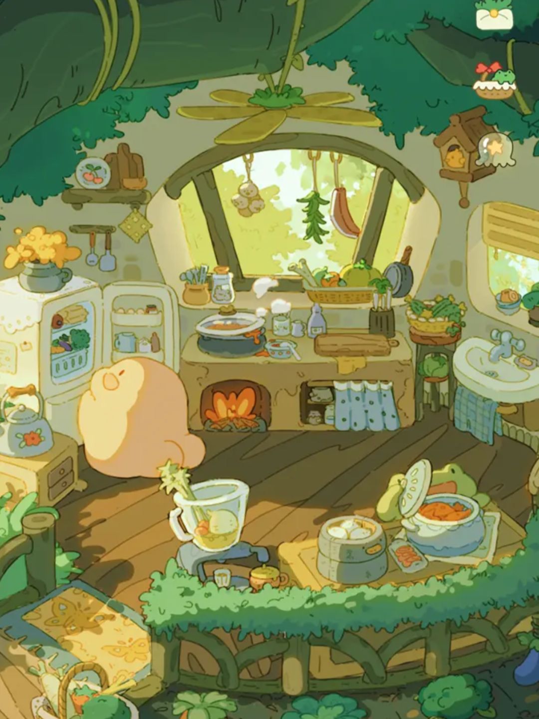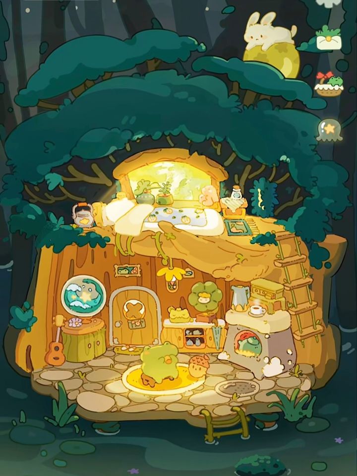 🌟树屋是家,更是它们友情的见证。壁炉里噼啪的柴火声,木架上亲手制作的小摆设,都弥漫着分享、陪伴与点滴付出的快乐。住在里面,每一天都像被甜甜的友谊蜜糖包裹着。快来和蛙蛙豹豹一起,浇灌这棵用善意与陪伴滋养的树屋吧!