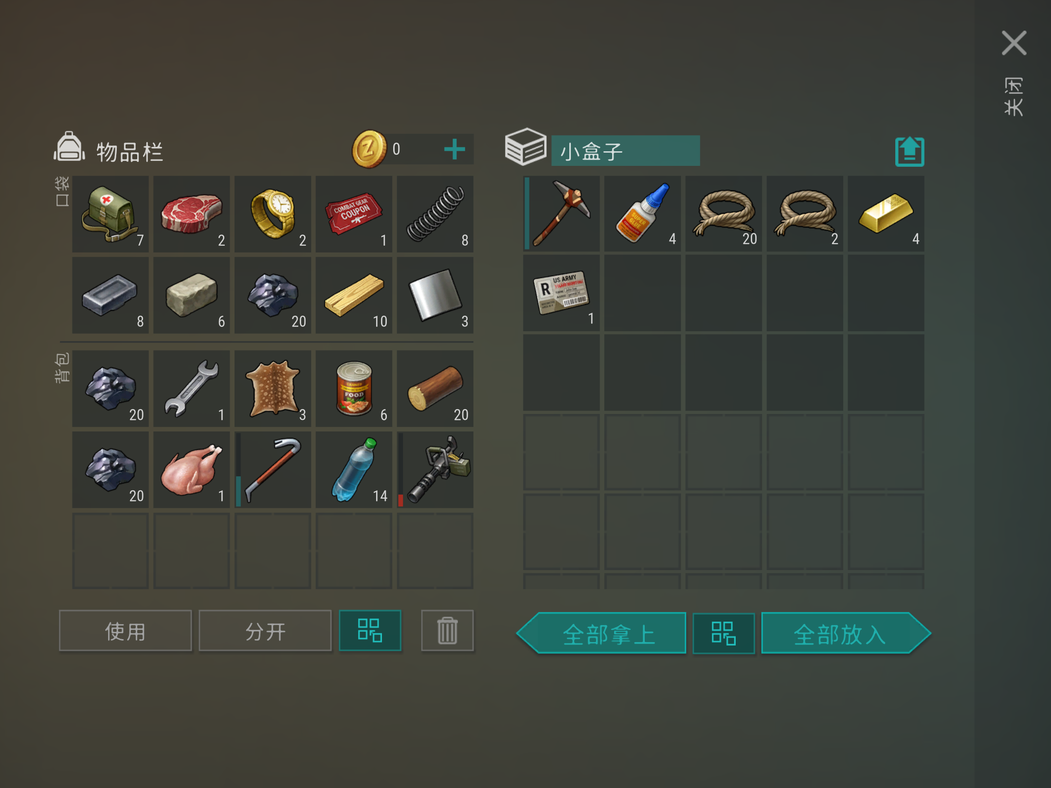 新手村地图,带两把石斧和一组石头就够,正门箱子提供木材,